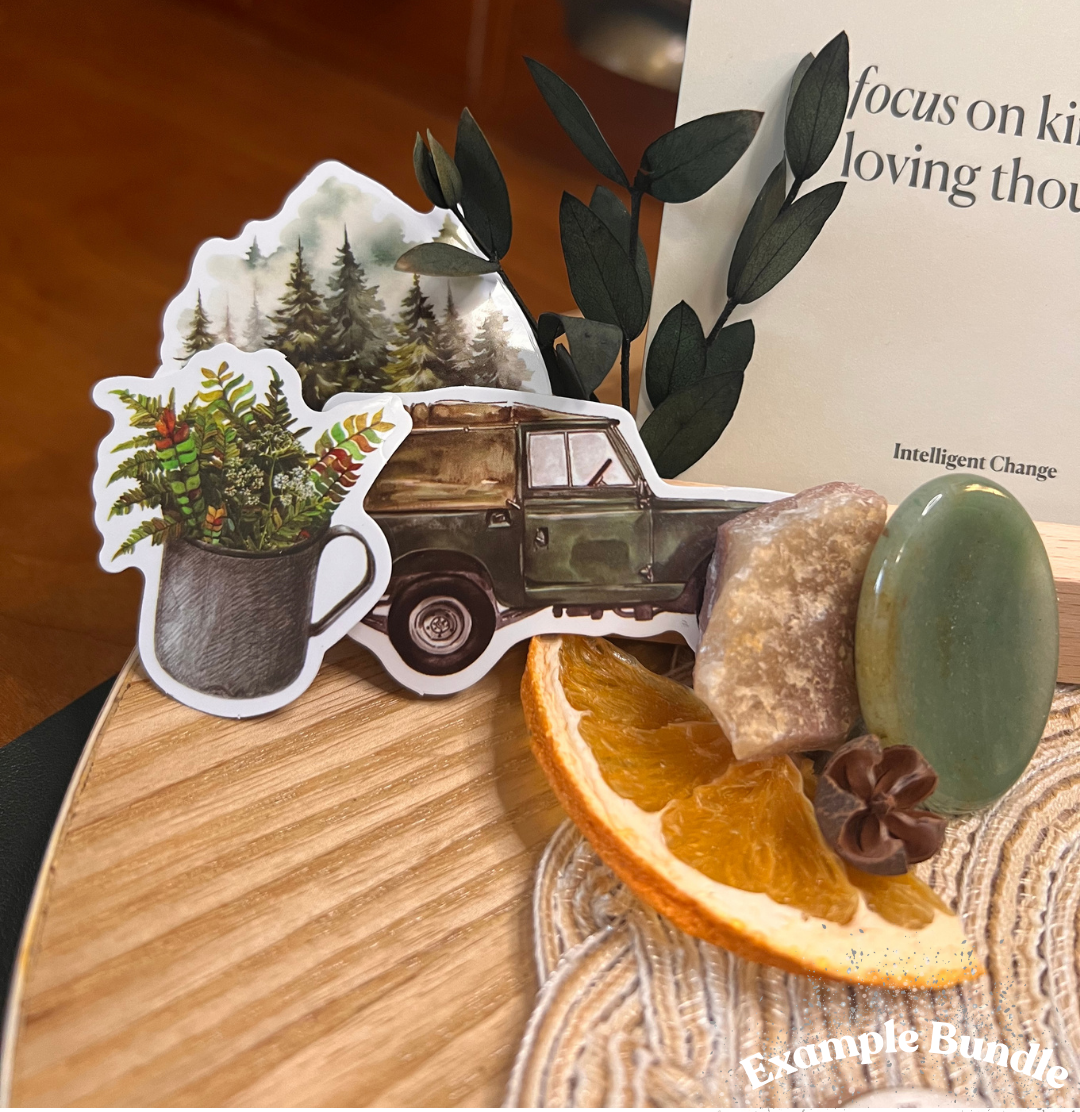 A Deluxe Bundle features a thoughtfully curated collection of crystals, charms, and cozy décor pieces designed to bring warmth, joy, and positive energy into your space. Each item is chosen to create a small moment of magic — perfect for crystal lovers, collectors, or anyone who enjoys nature-inspired treasures.