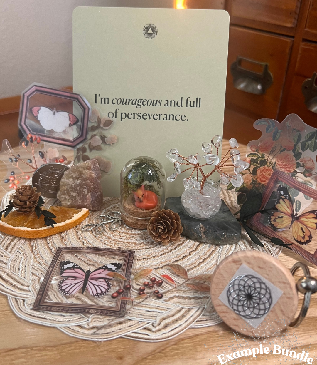 Each Live and Wonder bundle is carefully gathered and packed with small joyful treasures meant to spark curiosity and bring a little magic into everyday life. Thoughtfully curated crystals, charms, and nature-inspired décor pieces make this bundle perfect for collectors, crystal lovers, or anyone who enjoys whimsical woodland treasures.